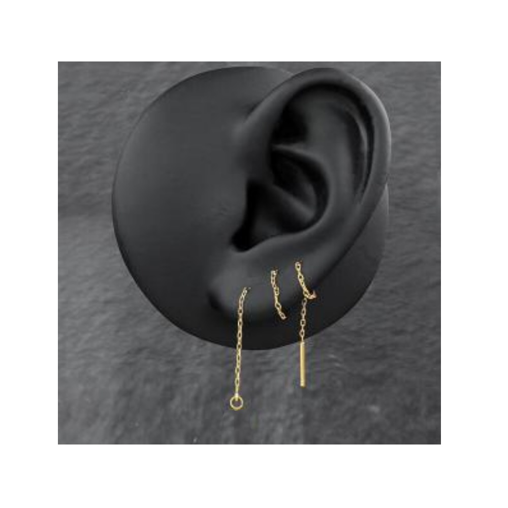 Catenella realizzata in acciaio chirurgico 316L lucido con trattamento di Anodizzazione dorata, nata per essere infilata come una cucitura nei fori dell’orecchio … a mo’ di serpente.