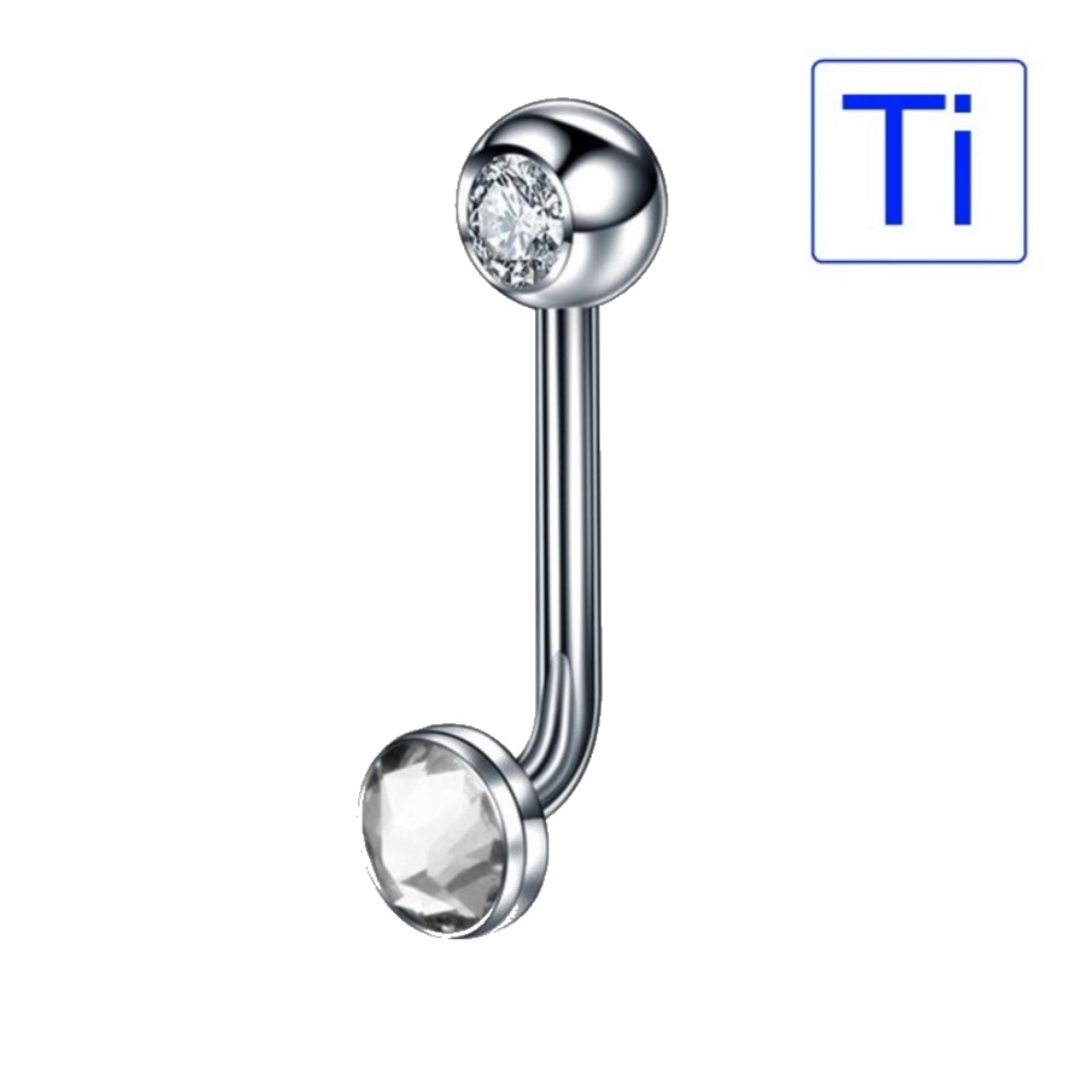 Gioiello realizzato in puro Titanio. Costituito da un accessorio a sfera con brillantino Zirconia da tre mm e sull’altro lato da un accessorio amovibile costituito da brillantino da 5 mm.