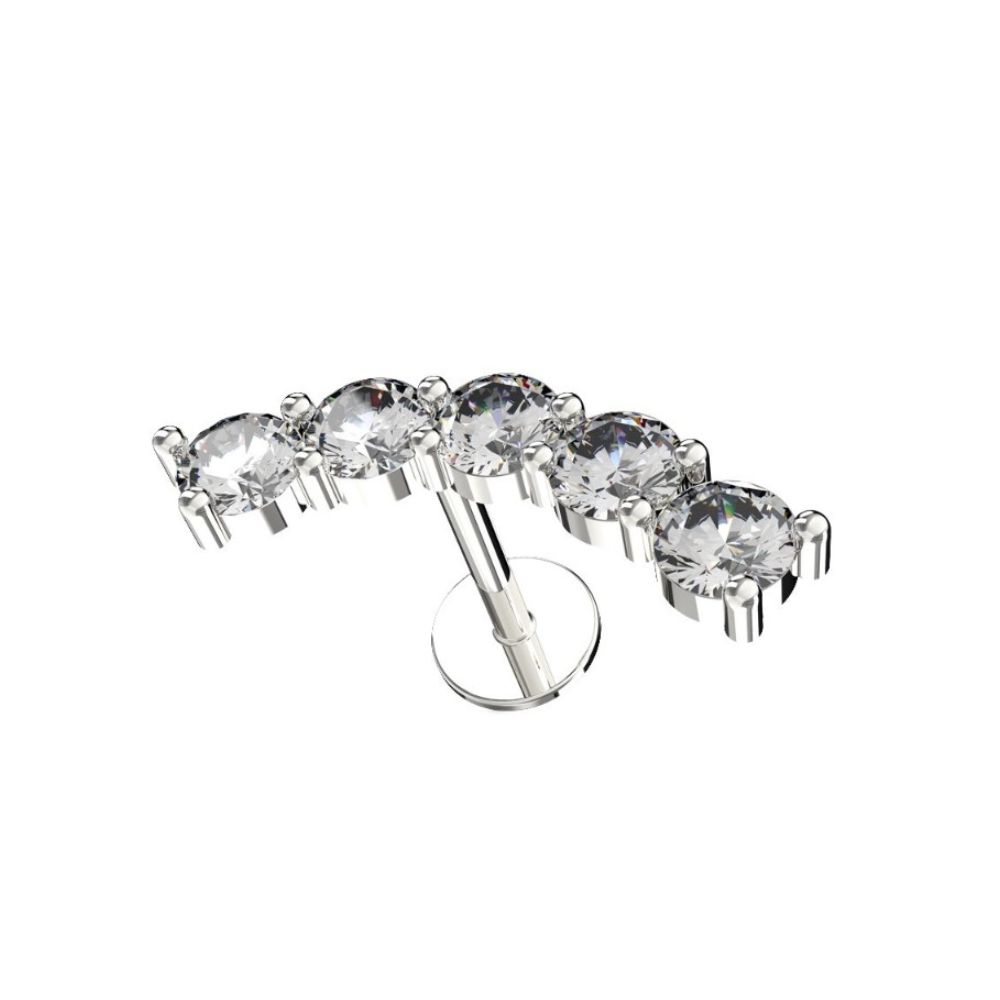 Gioiello per Helix con Filettatura Interna, in acciaio chirurgico colore ” naturale ” con cinque cristalli chiari Zirconia tutti uguali fra loro.