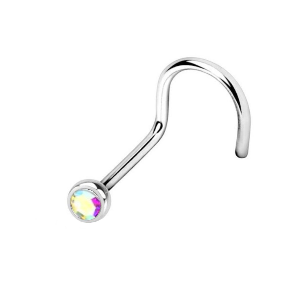 Gioiello per narice in Acciaio chirurgico colore “naturale” con accessorio in cristallo Zirconia .