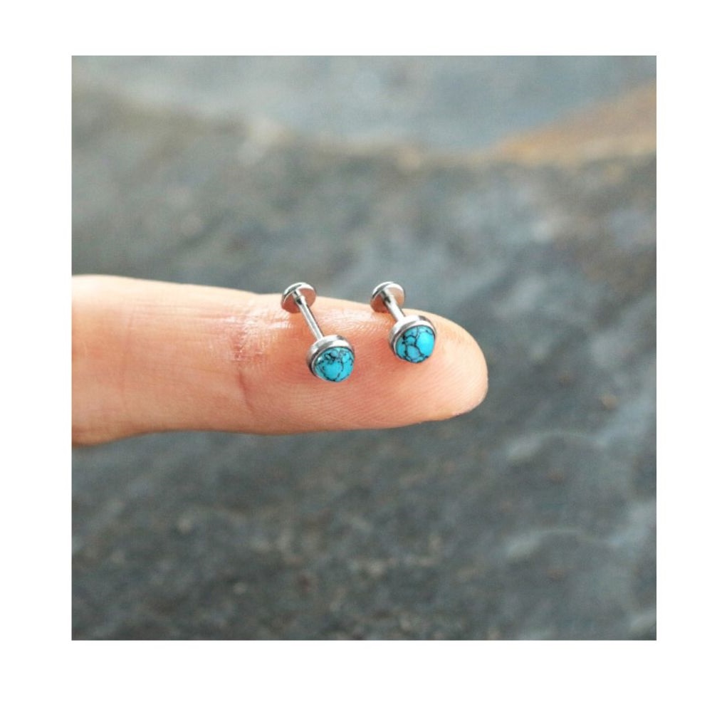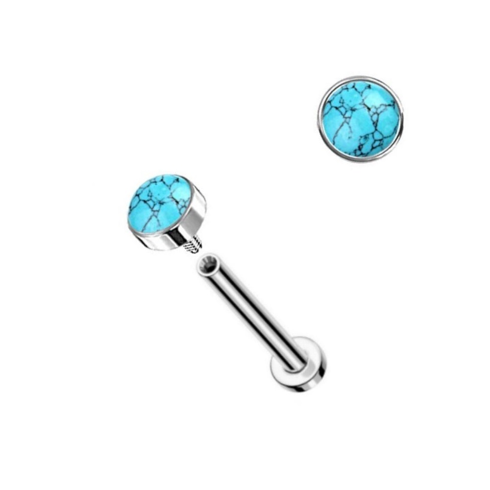 Gioiello labret in Acciaio chirurgico colore “naturale” con top in acciaio e pietra Turchese incastonata.