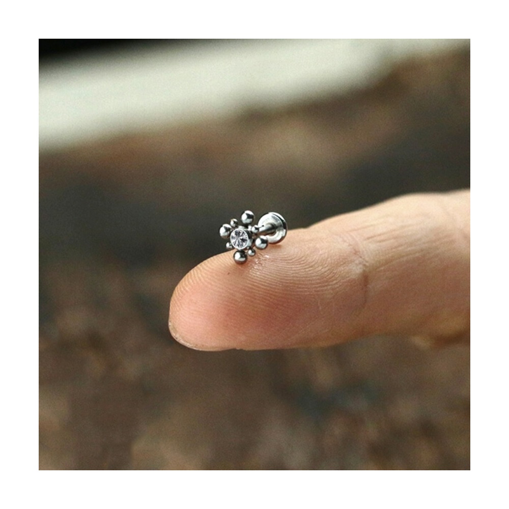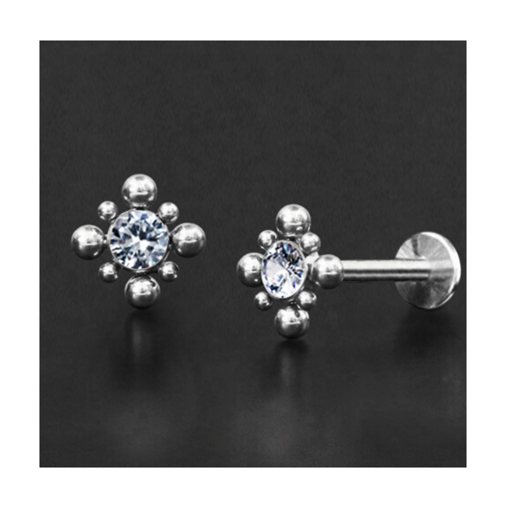 Gioiello labret in Acciaio chirurgico colore “naturale” con corona microsfere e cristallo chiaro