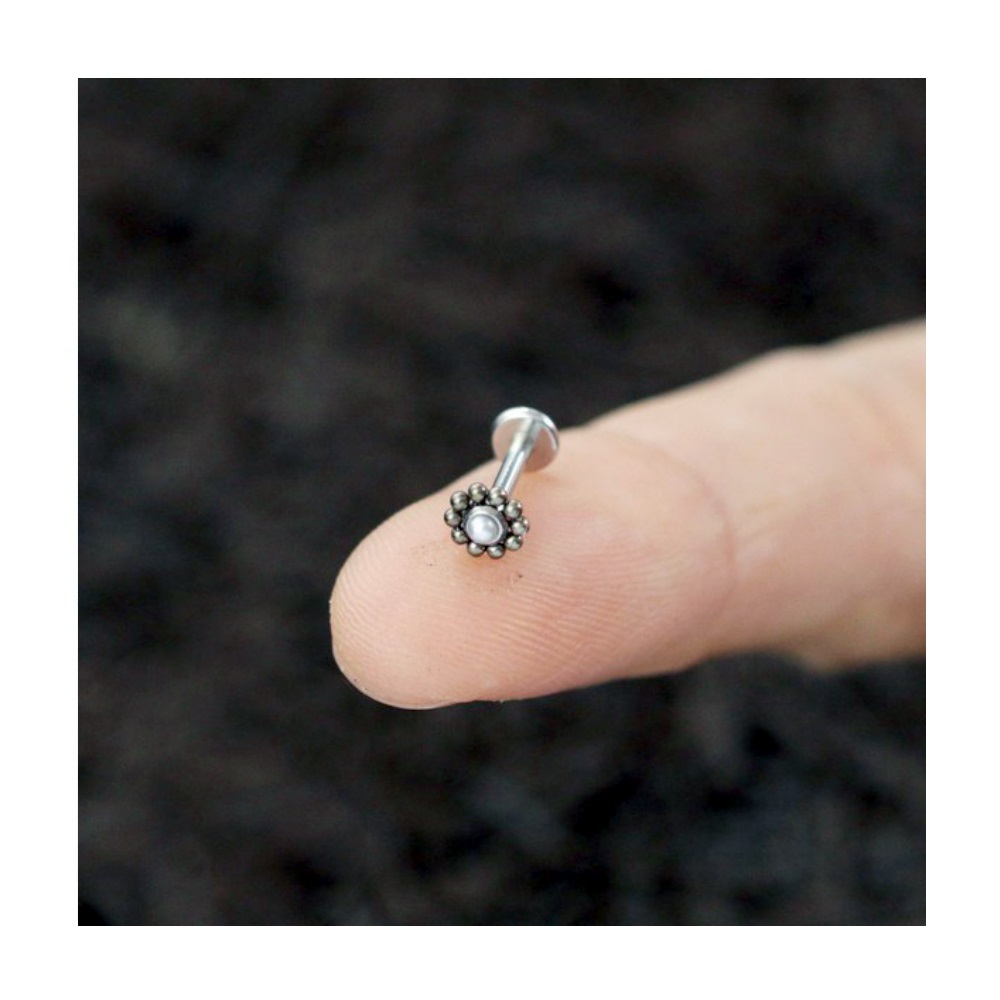 Labret FILETTATURA INTERNA con Corona microsfere e Centrale in Opale