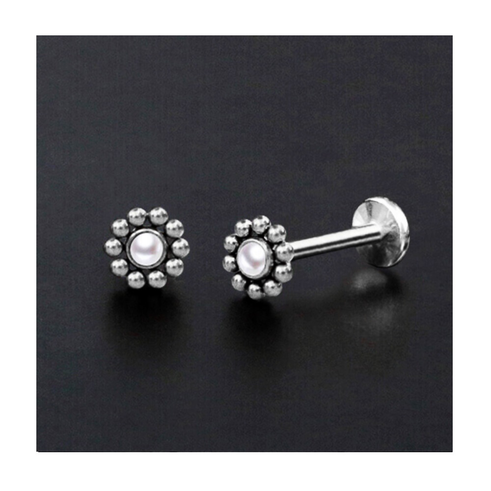 Labret FILETTATURA INTERNA con Corona microsfere e Centrale in Perla