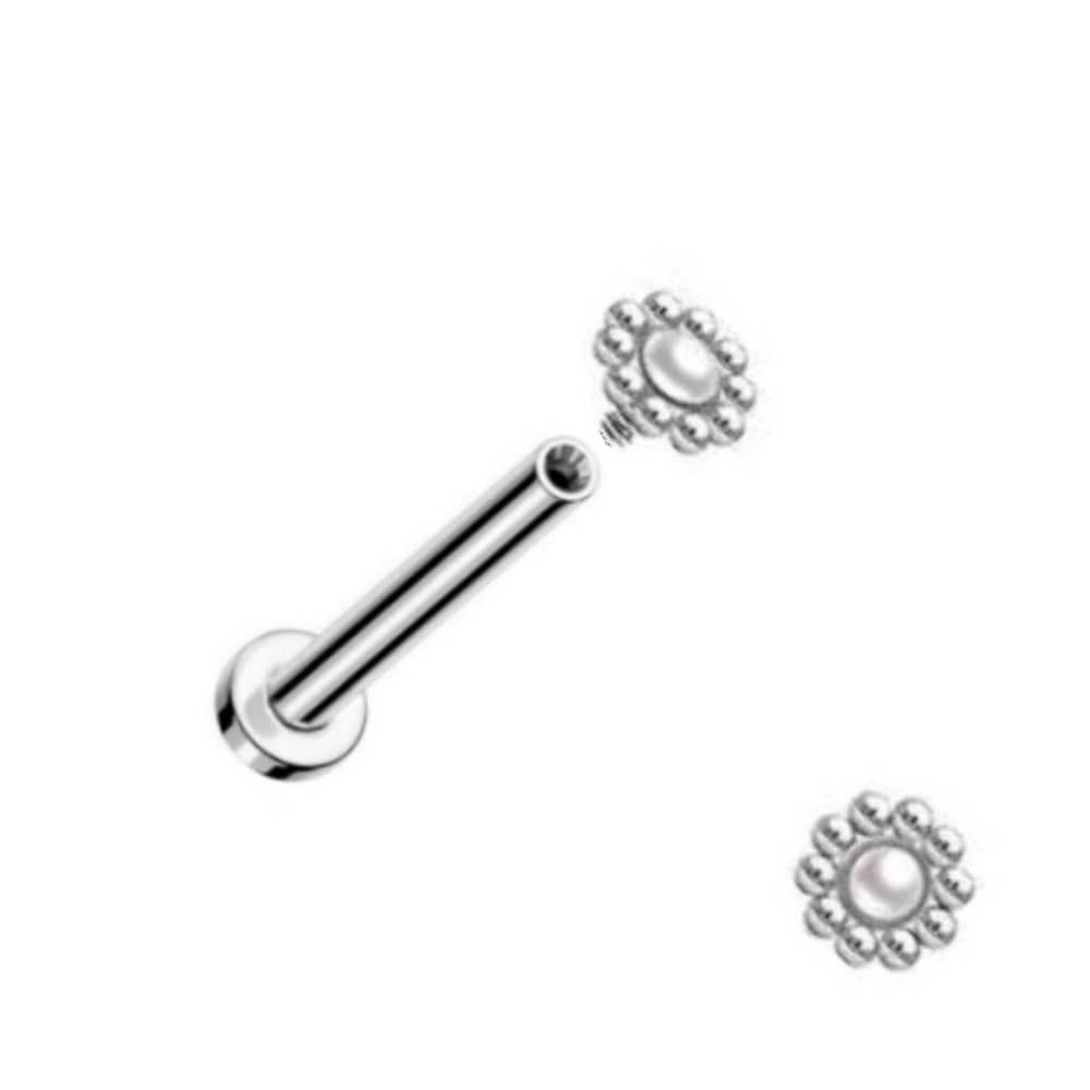 Gioiello labret in Acciaio chirurgico colore “naturale” con corona microsfere e perla chiara