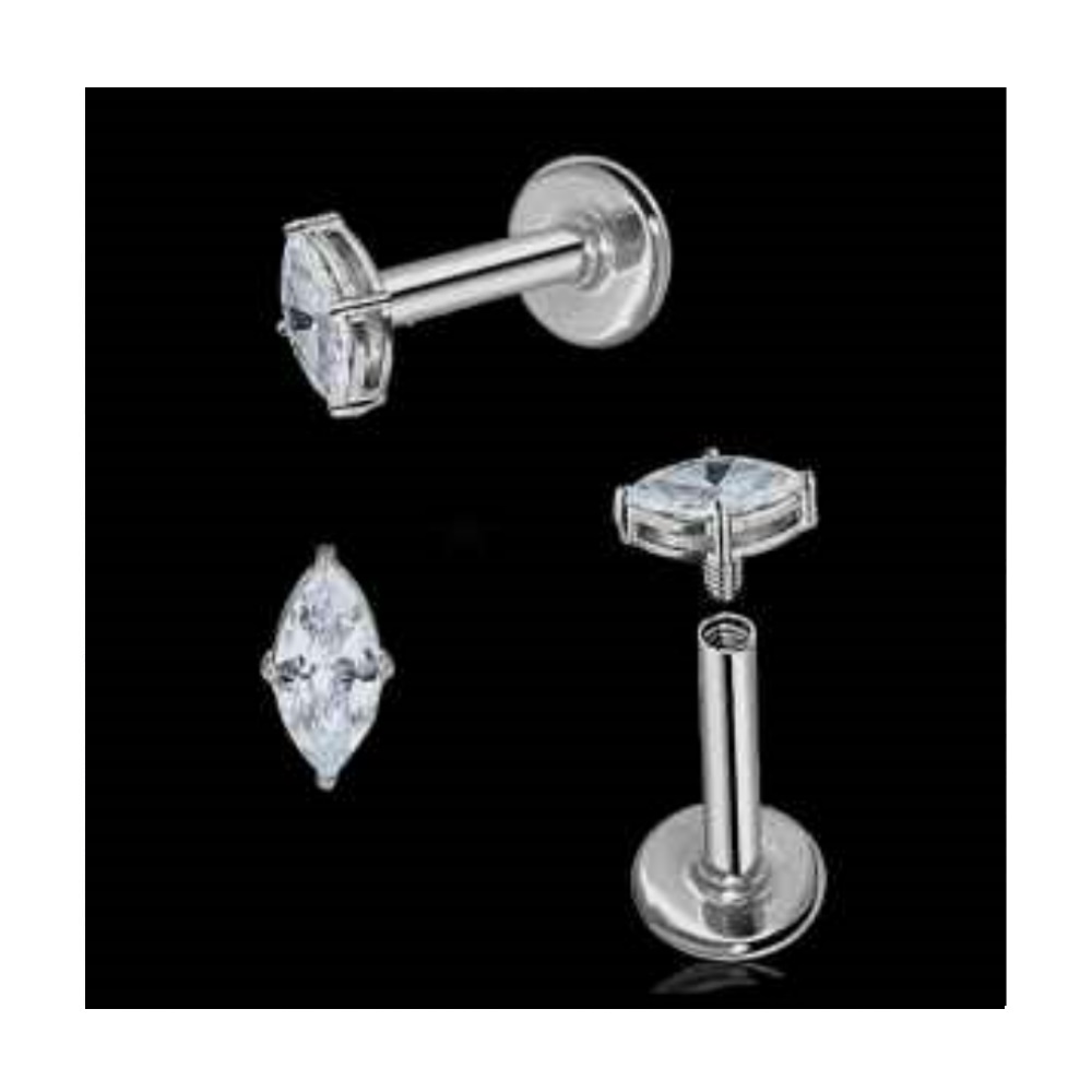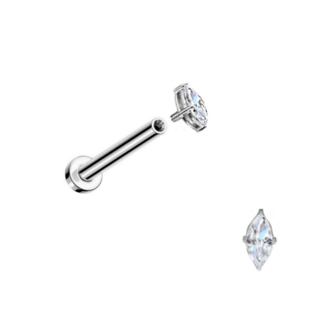 Gioiello labret in Acciaio chirurgico colore “naturale” con cristallino ovale.