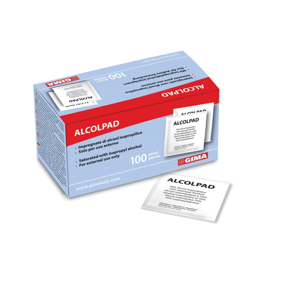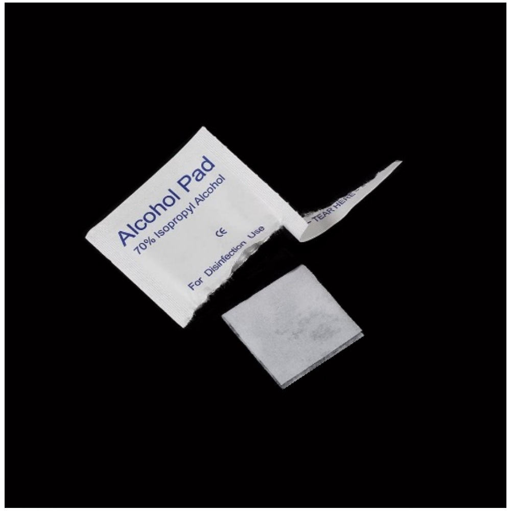 Pad di TNT già impregnati di alcol isopropilico pronti per l’uso.