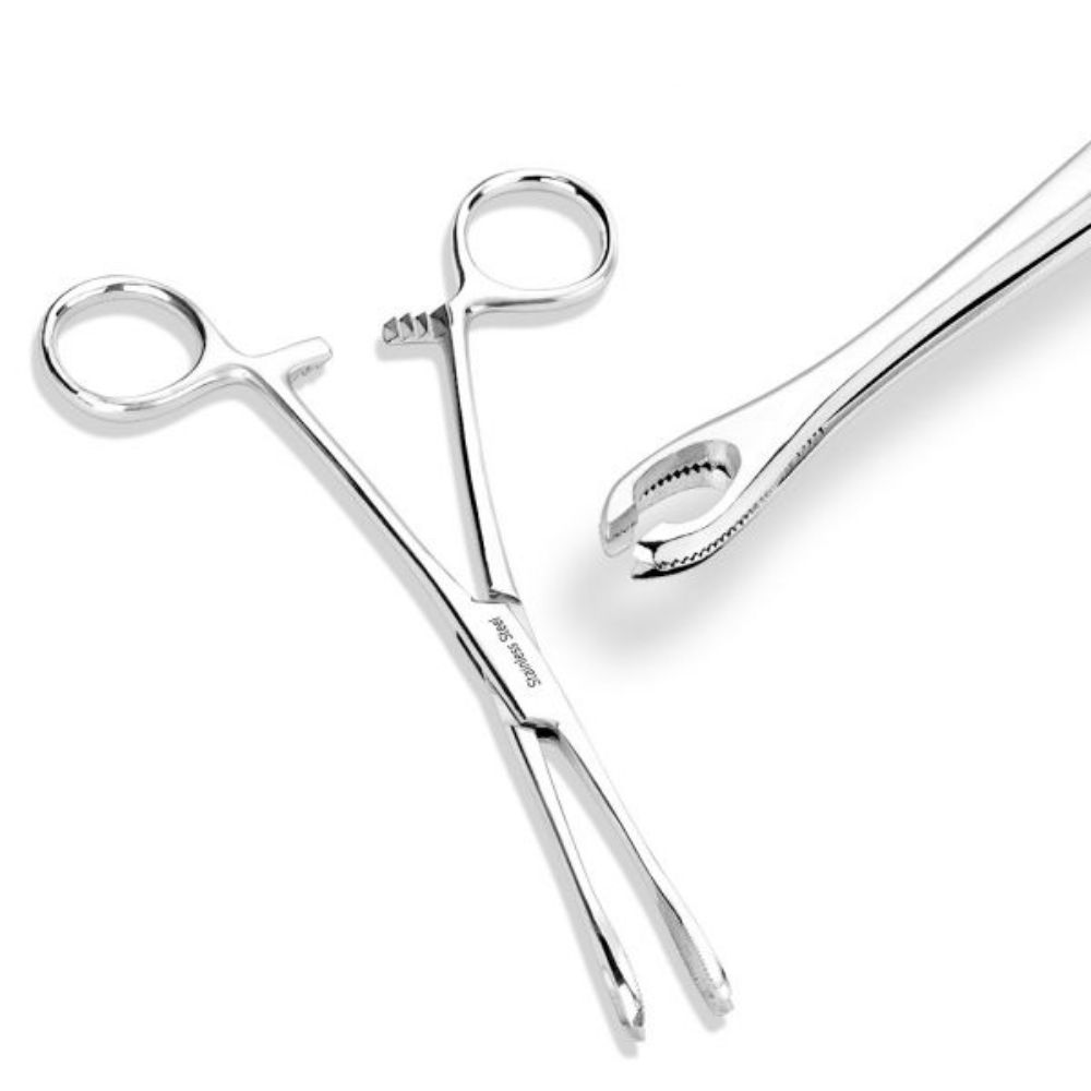 La pinza con ovali aperti e’ uno strumento che permette di lavorare in sicurezza ed è utilizzata per piercing all’ombelico, alla lingua od altri.
