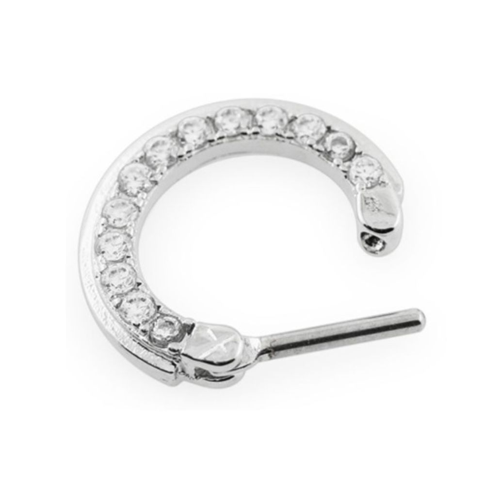 Sul lato frontale ha una fila di brillantini in linea, montati da un solo lato, perfettamente visibili frontalmente, quindi ideale per il piercing ” septum ” .